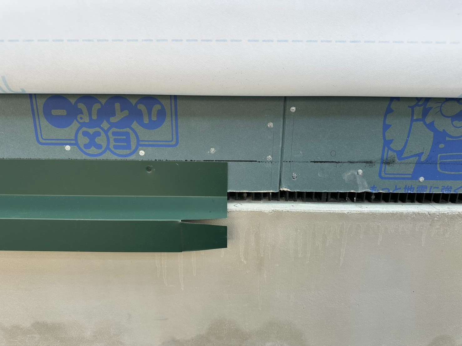 関市の新築工事にて、外壁板金の土台水切りの取り付けをしました!