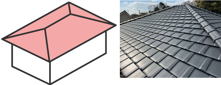屋根のてっぺん(棟)から四方向すべてに屋根面が傾斜している